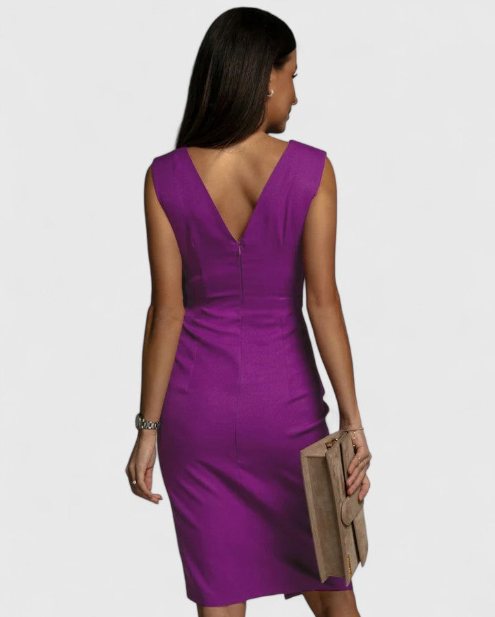 • Refined elegance – Its fitted cut and v-neck highlight feminine curves, creating a sophisticated and elegant silhouette.