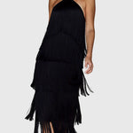 Turn heads wherever you go with the Artiselle™ Tassel Dress. Designed for women who love sophistication with a bold twist, this dress features a stunning halter neckline and an open back for an elegant yet sensual touch. The cascading tassels create graceful movement, making it the perfect statement piece for special occasions.