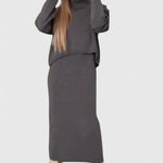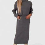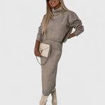 Experience the perfect blend of warmth and style this autumn with the Chrystahl | Elegant Dress and Turtle Neck Sweater Set, designed to elevate your cold weather wardrobe!