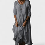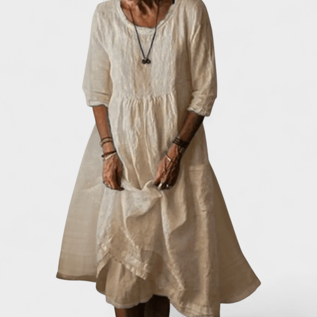 This blue linen dress combines lightness and comfort in a loose and elegant design. Perfect for summer days, it conveys a relaxed style with a boho chic touch that enhances your authenticity and freshness.