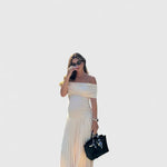 - Flattering Design – The off-shoulder neckline and flowing pleats enhance your silhouette for an elegant look.