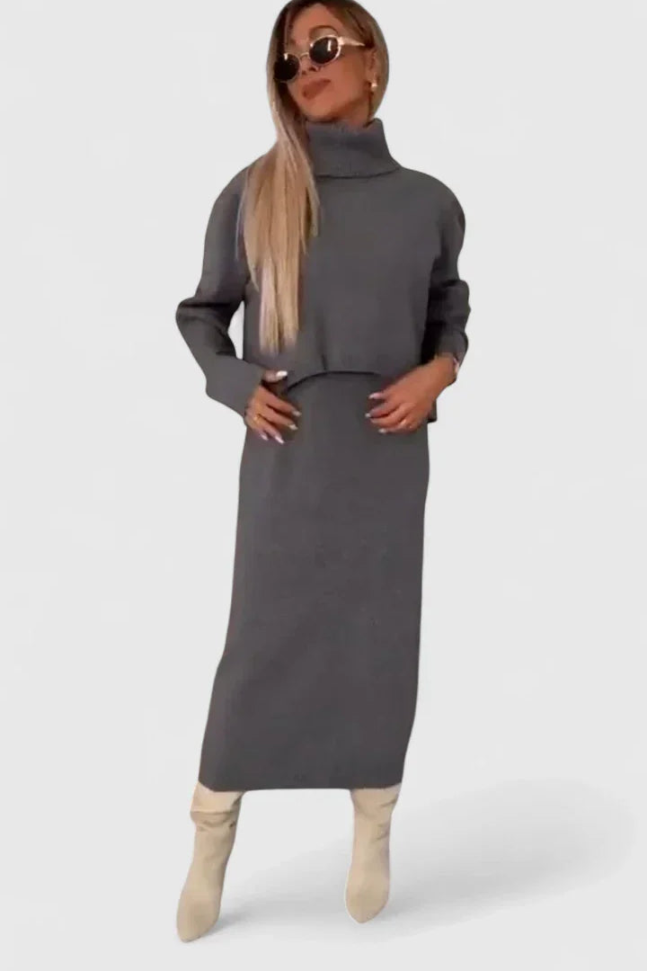 Chrystahl | Elegant Dress and Turtle Neck Sweater Set