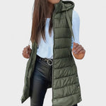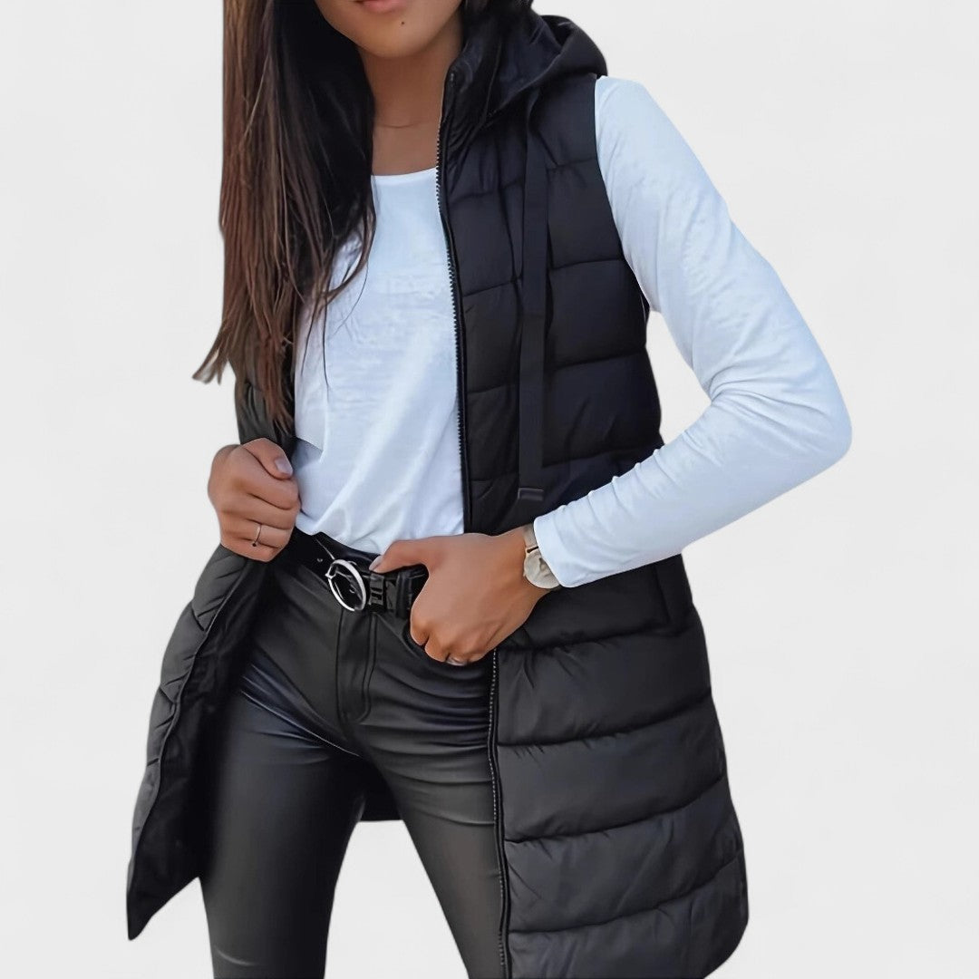 Kimberly - Long sleeveless quilted vest with hood