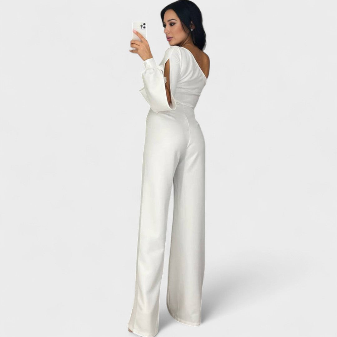 An exclusively designed jumpsuit that combines sophistication and boldness. Its asymmetrical cut adds a modern touch that enhances the silhouette with confidence and style.
